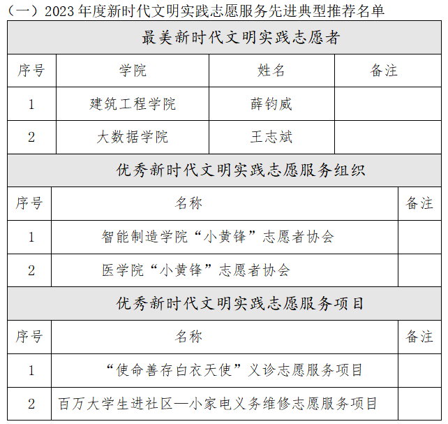 2023年度新时代文明实践志愿服务先进典型评选活动、2023年度“最美青年”评选活动、“我为同学做实事”项目交流展示活动评选活动的