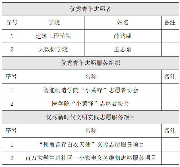 为深入贯彻落实党的二十大精神和习近平总书记关于志愿服务工作的系列重要指示精神,充分发挥先进典型示范引领作用,为进一步推动青年志愿服务工作制度化、常态化、品牌化,大力弘扬“奉献、友爱、互助、进步”的志愿精神,根据《关于组织开展2023年优秀青年志愿者、优秀青年志愿服务组织、优秀青年志愿服务项目评选活动的通知》文件要求,对递交的佐证材料进行严格审核,成立评审小组对候选人进行评审、投票。现将拟推荐名单予以公示,从即日起予以公示,公示期3天。