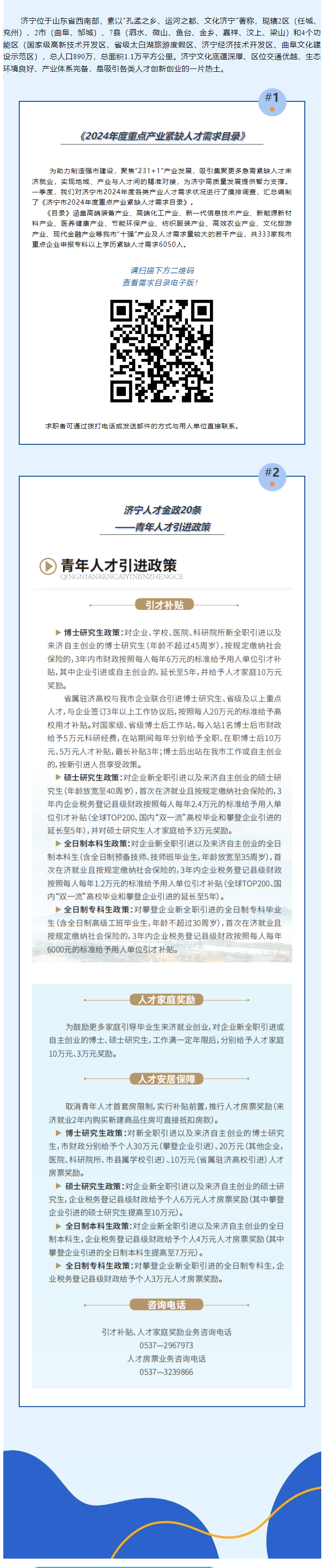 济宁发布《2024年度重点产业紧缺人才需求目录》、青年人才引进支持政策