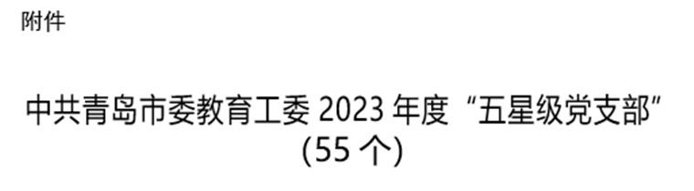 中共青岛市委教育工委下发《关于命名2023年度“五星级党支部”的通知》,雷竞技的赛事积分马克思主义学院教师第一党支部、智能制造学院教师第二党支部、教育学院教师党支部、医学院教师党支部4个党支部荣获2023年度“五星级党支部”荣誉称号。