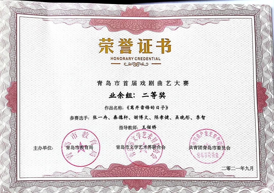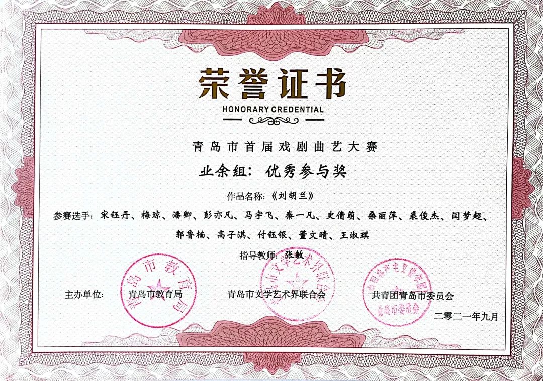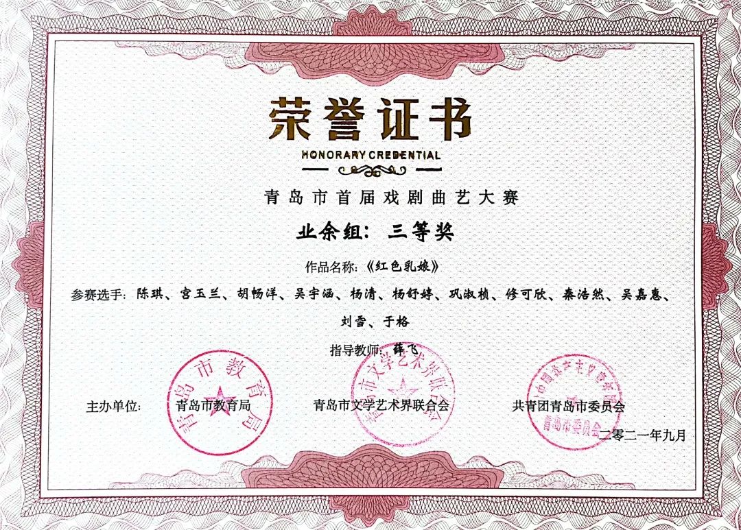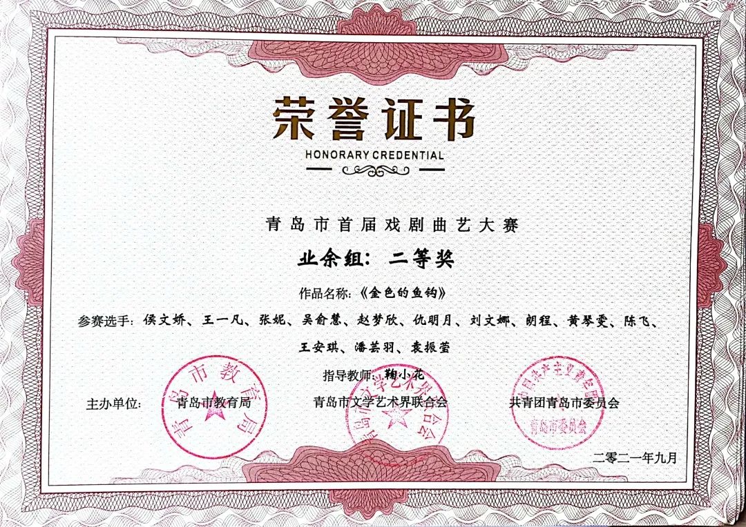 本次大赛由中共青岛市委宣传部指导,由中共青岛市委教育工作委员会、青岛市教育局、青岛市文学艺术界联合会、共青团青岛市委员会共同主办,由青岛市戏剧家协会、青岛市曲艺家协会、智慧青岛、中导映画(山东)影业有限公司联合承办的“红心永向党--青岛市首届戏剧曲艺大赛”圆满落幕。