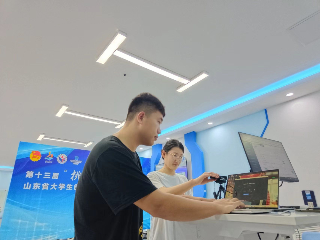 在比赛现场,指导老师仔细聆听各参赛选手的路演和答辩,并在结束后给出真诚可行的意见。在竞赛前,参赛人员不断练习演讲稿,进行仿真模拟竞赛。严格按照本次竞赛的时间、方式多次模拟训练。