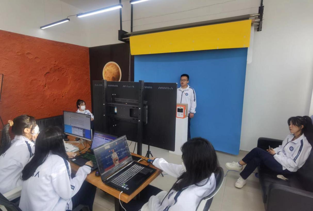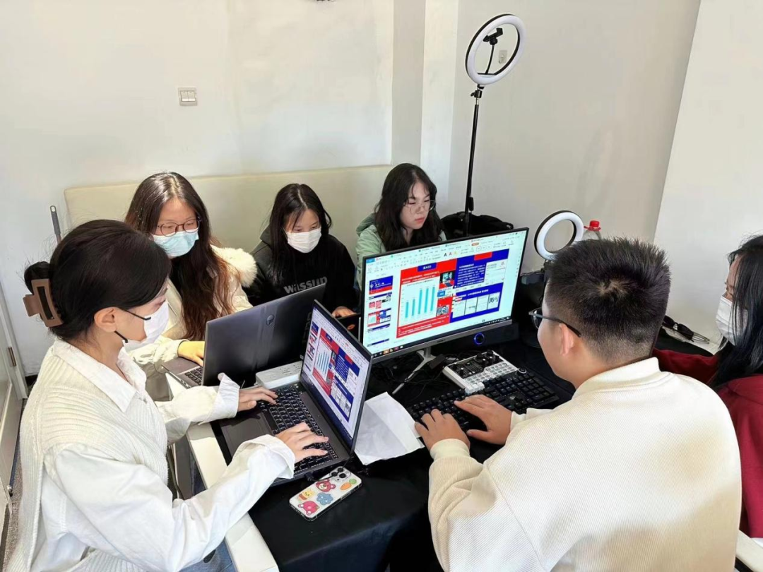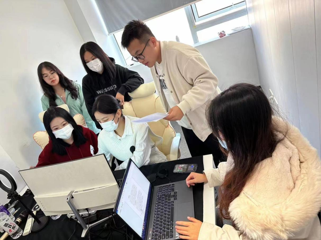 倒计时两小时——反复调试电脑及投屏设备,确保不出任何由于网络和音视频等外部缘由而存在的潜在问“危机”。项目团队每个成员根据自身擅长负责此项目的“一环”,调节心态,提高专注度,各司其职,按照先前的排练经验,全力配合项目负责人李天电脑软件连接设备进行最后的试演。