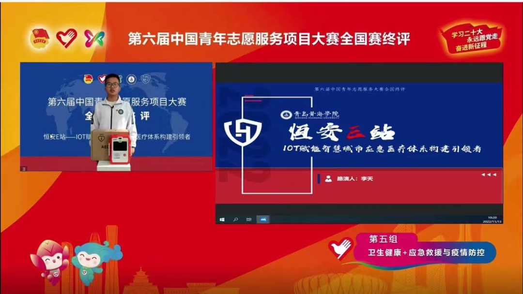 志愿服务本身没有优劣之分,我们项目也是不断地在学习之中成长。恒安E站—IOT赋能智慧城市应急医疗体系构建引领者项目在艺术学院李青洋老师与潘红叶老师的带领下,通过与团队成员不断完善资料程序,一路披荆斩棘,终入围第六届中国青年志愿服务项目大赛全国赛初评优秀项目前五百强。至如今第六届青年志愿者服务大赛的国赛终评中荣获佳绩,这份成绩离不开学校的专业师资力量为项目提供的方向引导和校友协会为我们提供的经验指导和技术支持,更是离不开我们每一位黄海学子对于中国志愿公益事业的一腔热忱。
