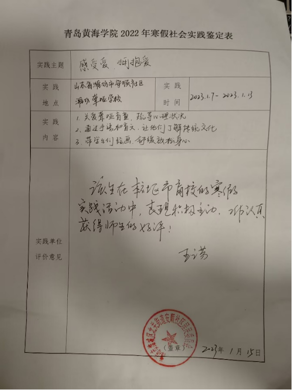 实习单位:山东省潍坊市安顺社区潍坊聋哑学校。