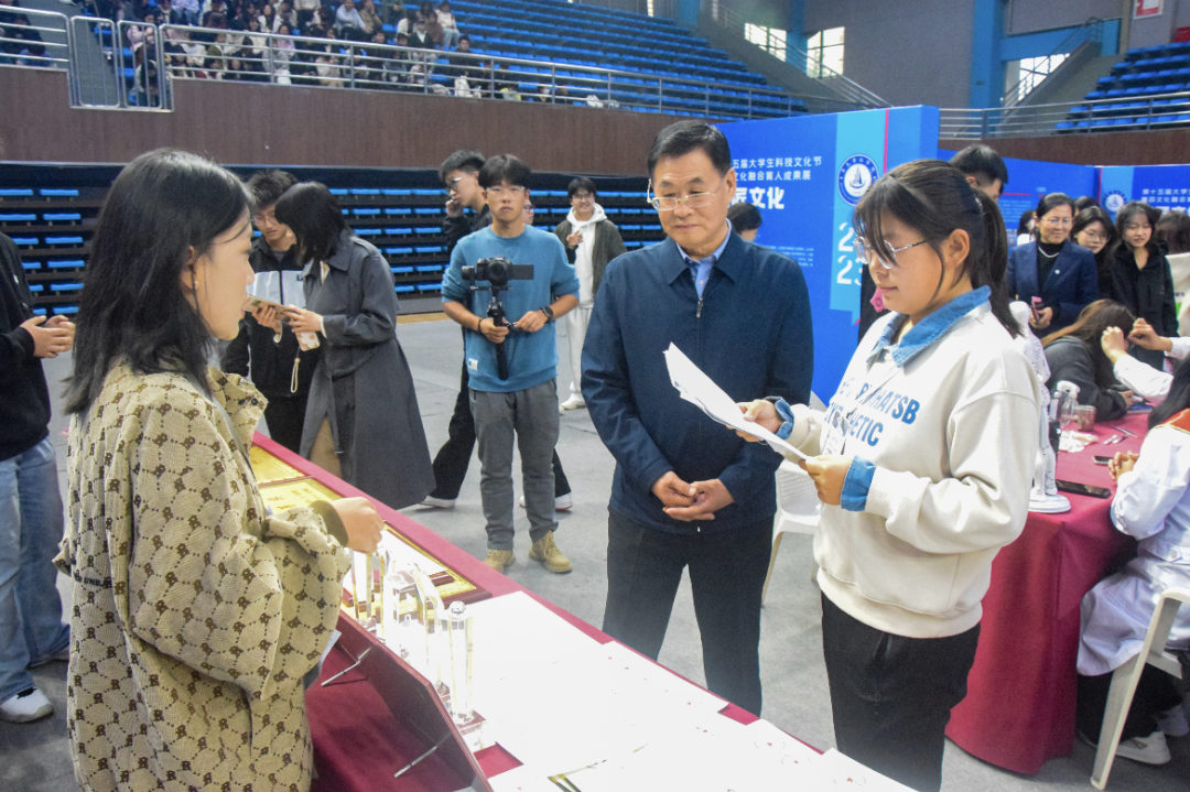 开幕式结束后,参会领导与学生代表一同参观了各学院精心准备的科技文化成果展。此次展览以培育学生专长、培育创新意识、激发创新潜能、积蓄强国力量为工作导向,以“优秀传统文化育人、雷锋精神红色文化育人、工匠文化实践育人、创新创业文化协同育人”的四文化育人特色夯基垒台,以“一院一品”亮点活动为依托选材备料,突出科创强国重点,打造学风建设亮点品牌。