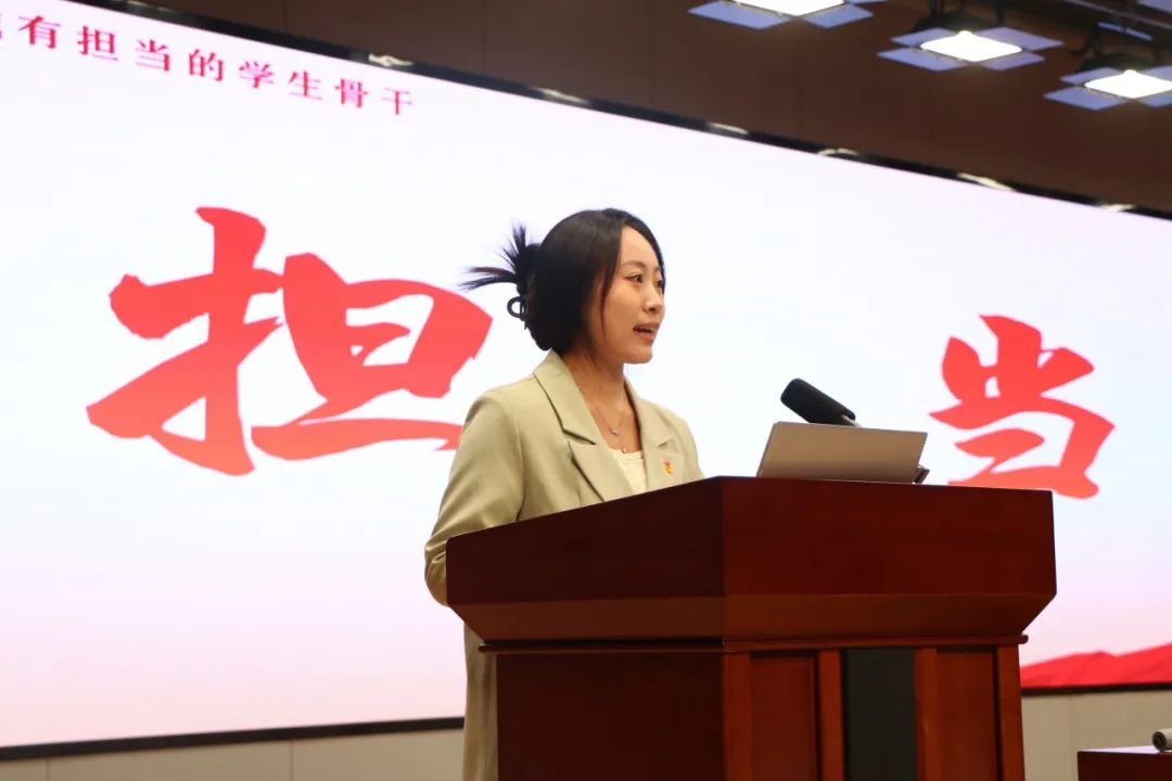 她指出学生骨干的成长路径包括“加强政治训练—跟上步子”、“培养担当品格—找对路子”、“勇于砥砺奋斗—撸起袖子”、“提升学习能力—成为台柱子”。她强调要成为具备人格魅力的青年政治骨干,做好青年朋友,而不是青年官。