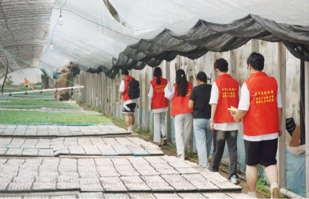志愿者团队先后走访崔官屯村、宋郎村等8个许营西瓜主要种植村。西瓜种植面积辽阔,是当地农民增收的重要来源。团队成员深入田间地头,与瓜农们亲切交谈,了解他们的生活状况和西瓜种植情况。瓜农们经验丰富,伴随着经验的积累与生产技术的进步,许营逐渐培育了具有地方特色的西瓜种植技术。通过交谈了解到许营西瓜以其皮薄、口感好、甜度高而闻名。随着市场竞争的加剧,瓜农们也遇到了一些困难,如种植技术落后、销售渠道单一等问题。团队在村委会主任的带领下参观了龙汇食品产业园等两个大型育苗场。这里培育了各种各样的蔬菜和水果苗木,而西瓜苗则是农民一年中最看重的苗木。在体验育苗过程中,团队成员看到了先进的育苗技术和设备,深感农业科技创新的重要性。