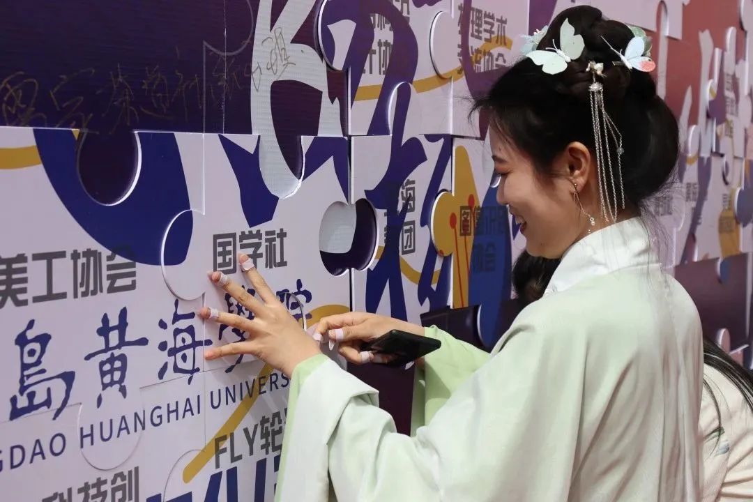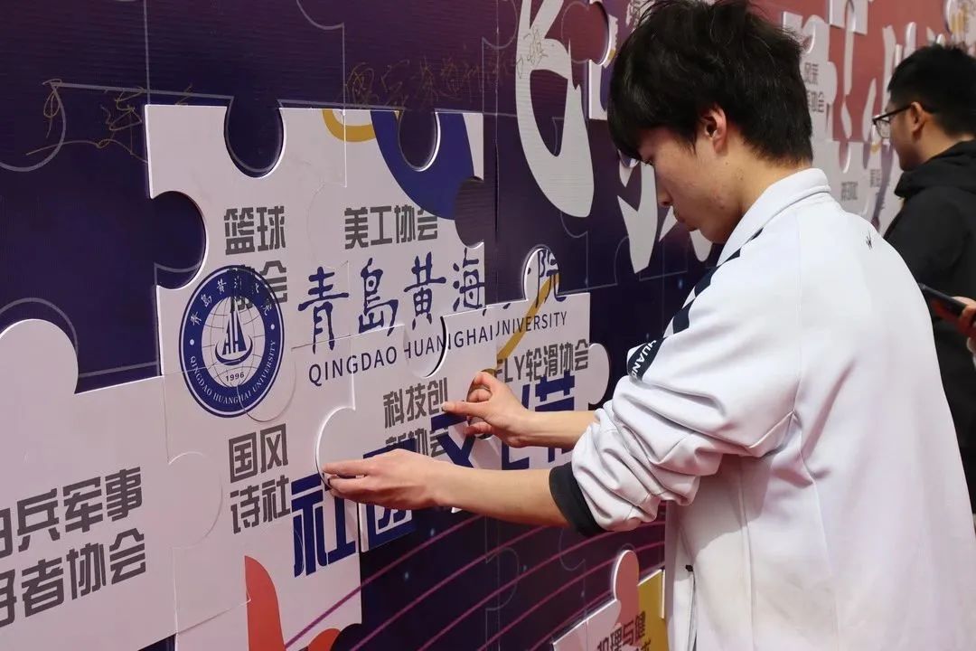 开幕式上,各大高校代表与社团负责人上台,走过红毯,完成展板拼图并合影留念。一直以来,我校社联坚持着“进取、协作、奉献”的黄海精神,本着“服务、指导、监督”的原则对全校社团给予帮助和指导。在校团委的正确引导下,社联坚持团结协作、携手并进,与各高校兄弟组织密切配合,互相协作,为校园文化发展做出杰出贡献。