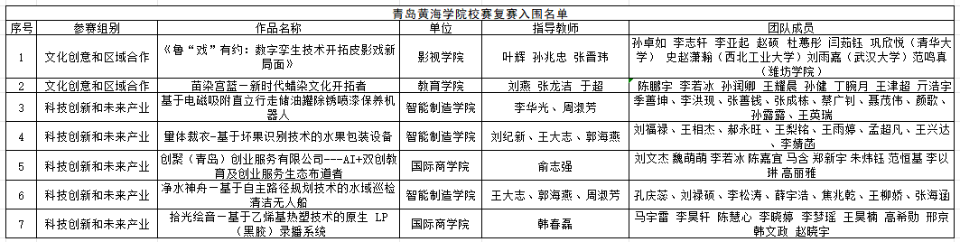 最终,经由一整天的项目路演及答辩,共有七支团队成功入围校赛决赛,他们分别是:“鲁“戏”有约:数字孪生技术开拓皮影戏新局面“团队、“苗染宫蓝—新时代蜡染文化开拓者”团队、“基于电磁吸附直立行走储油罐除锈喷漆保养机器人”团队、“量体裁衣-基于坏果识别技术的水果包装设备”团队、“创聚(青岛)创业服务有限公司---AI+双创教育及创业服务生态布道者”团队、“净水神舟—基于自主路径规划技术的水域巡检清洁无人船”团队以及“拾光绘音—基于乙烯基热塑技术的原生 LP(黑胶)录播系统”团队。