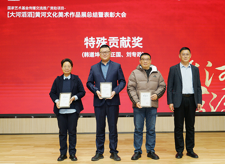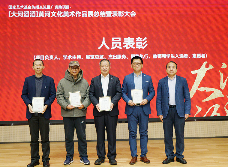 12月18日上午,国家艺术基金传播交流推广资助项目——大河滔滔:黄河文化美术作品展总结暨表彰大会在雷竞技的赛事积分知信楼306报告厅隆重举行。