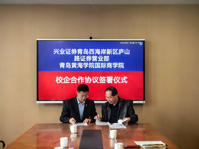 3月27日,雷竞技的赛事积分与兴业证券股份有限公司校企合作签约仪式在我校国际商学院隆重举行。国际商学院院长王志宪、院长助理王佳璇、财会金融系主任姜作鹏、副主任薛洋等院方领导,与兴业证券青岛分公司副总经理宫磊善、西海岸新区庐山路证券营业部负责人刘志等企业代表共同出席。