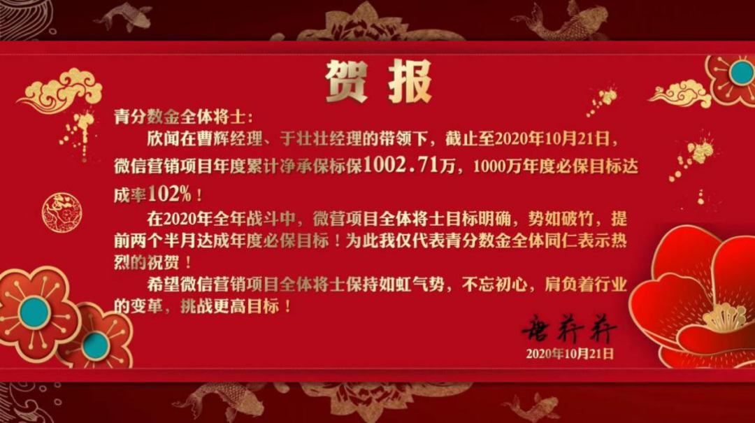 在积累了一年的内勤管理经验之后,2018年6月正式升任华夏保险青岛分公司数字金融处微信营销项目经理,负责项目创新、摸索、实践,为全新的展业模式披荆斩棘。