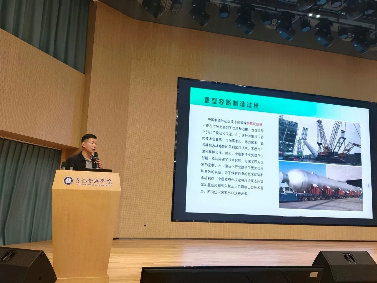 报告会上,孙工结合企业实际生产,详细介绍了大型压力设备的封头制造、筒体制造、接管制造、弯管制造及装配过程等制造工艺知识。通过报告让学生深刻体会大国重器对国家经济发展的促进作用,充分了解大型设备的不同材质及规格等产品信息以及相关制造工艺知识,了解了机械制图、工程材料、机械制造工艺等专业知识的具体应用,意识到学好专业知识的重要性。