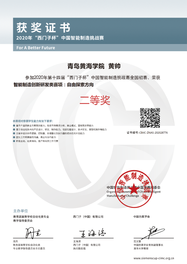 21岁的黄帅是青岛黄海学院智能制造学院2019级电气工程及自动化专业的一名在校生,同时也是青岛科德云电子科技服务有限责任公司的创始人。他获得省级以上奖项10余项、国家专利5项。大学期间,黄帅用勤奋和钻研诠释青春该有的模样。