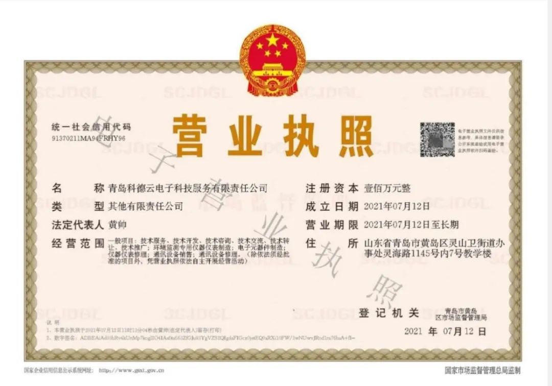 黄帅在智能制造学院科技创新协会结识了三位志同道合的好朋友,他们是来自不同专业不同年级的校友,在彼此交流中萌生了做医用冷链全程溯源监测的想法。于是,四个人一拍即合,于2021年7月一同踏上了大学生创新创业之路。创业之初,黄帅面临的首要问题是办公地点在哪里。在学校的大力扶持下,黄帅在学校数字经济创新创业园寻到了一处“宝地”,挂牌创办了青岛科德云电子科技服务有限责任公司,这是学校为鼓励大学生创新创业而筑建的孵化实践乐园。