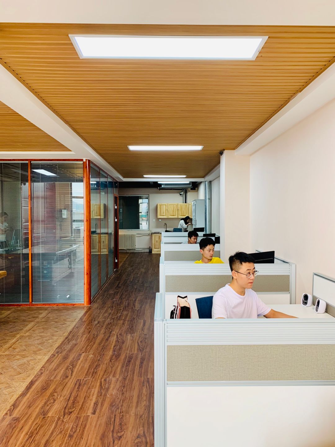 田军离开学校后,自主创业创立青岛大唐尚家装饰有限公司,也是我校艺术学院签订的校外实习基地之一,在人才培养、学生实训实习等方面与我校达成了密切的合作关系。2019年6月,青岛大唐尚家装饰有限公司与艺术学院视觉传达系共建“唐之韵”室内设计工作坊,企业投资近30万,建成了集装饰材料与施工工艺样板间、工作区、会议区、接待区、洽谈区于一体的高端工作坊。工作坊的建立进一步拓宽了艺术学院视觉传达系的教学实践平台;校企共同负责的工作坊导师制,使学生在校期间就能接触到实践项目,培养行业企业需求的零距离技能型人才。同时,对接了部分实训课程,企业带项目进工作坊,设计师参与指导,教师随时到工作坊挂职锻炼。