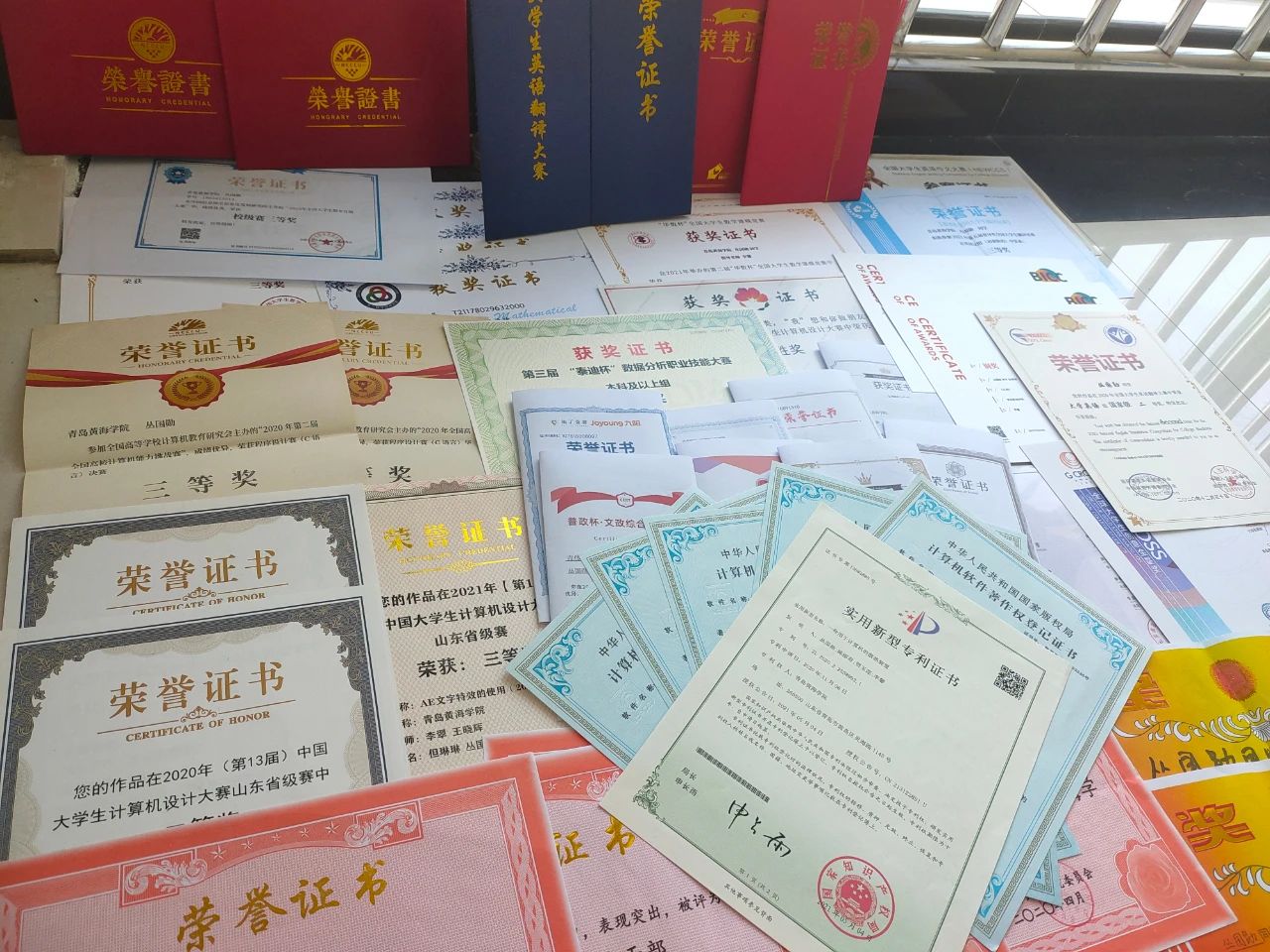 4月,丛国勋被西南大学农业工程与信息技术专业录取,成为一名准研究生。西南大学不但是一所“双一流”、211院校,还是中国农业科学院柑桔研究所(以下简称“柑桔所”)的唯一共建院校,可谓“全国独一份”。丛国勋即将就读的专业就是要给柑桔所提供技术支持。有同学调侃说,希望未来能吃上柑桔“国勋一号”。纵观丛国勋的考研之路,他能成功上岸绝不是偶然。大学四年,他发表期刊论文5篇(核心一篇,一作3篇,二作2篇),拥有实用新型专利2项(均为一作)、计算机软件著作权4项,获得山东省大学生科技节山东省一等奖、2021年全国高校计算机能力挑战赛华东区二等奖、国家级三等奖,2020年中国大学生计算机设计大赛山东省二等奖、国家级优胜奖,2020年全国大学生英语翻译大赛国家级二等,2021年获全国大学生英语翻译比赛国家级三等奖、2020-2021年度省政府奖学金、2019-2020年度国家励志奖学金、2020年“泰迪杯”数据分析职业技能大赛国家级三等奖,2021年中国大学生计算机设计大赛山东省三等奖,2021年优秀创业工作室及负责人称号。另在省级、国家级知识竞赛中获奖二十余项,山东省级二等奖以上10余项。