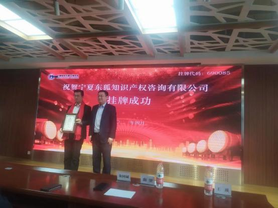 图1 2019年参加中国互联网大会留影 图2 2021年宁夏东狐知识产权咨询有限公司新四板挂牌