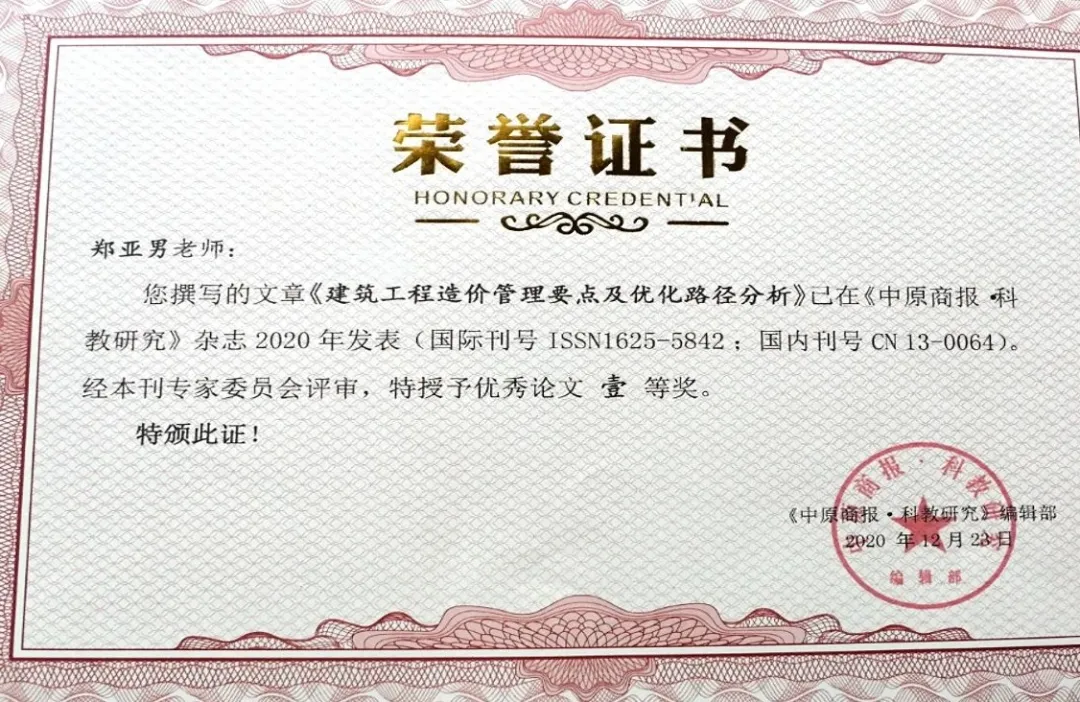 在专业学习方面,郑亚男一直坚持做到最好,勤学静思,以学促用。积极参加专业技能大赛,与团队成员多次参加全国3D大赛、全国BIM设计大赛并取得优异成绩,目前已取得专业CAD证书、专业BIM证书、英语四六级证书。兴趣爱好广泛,积极参与平面设计类比赛,其作品在山东省科普创作大赛中荣获三等奖,与老师们进行科研探究,课题研究,以第一作者的身份发表专业论文,被授予“优秀论文一等奖”荣誉称号。
