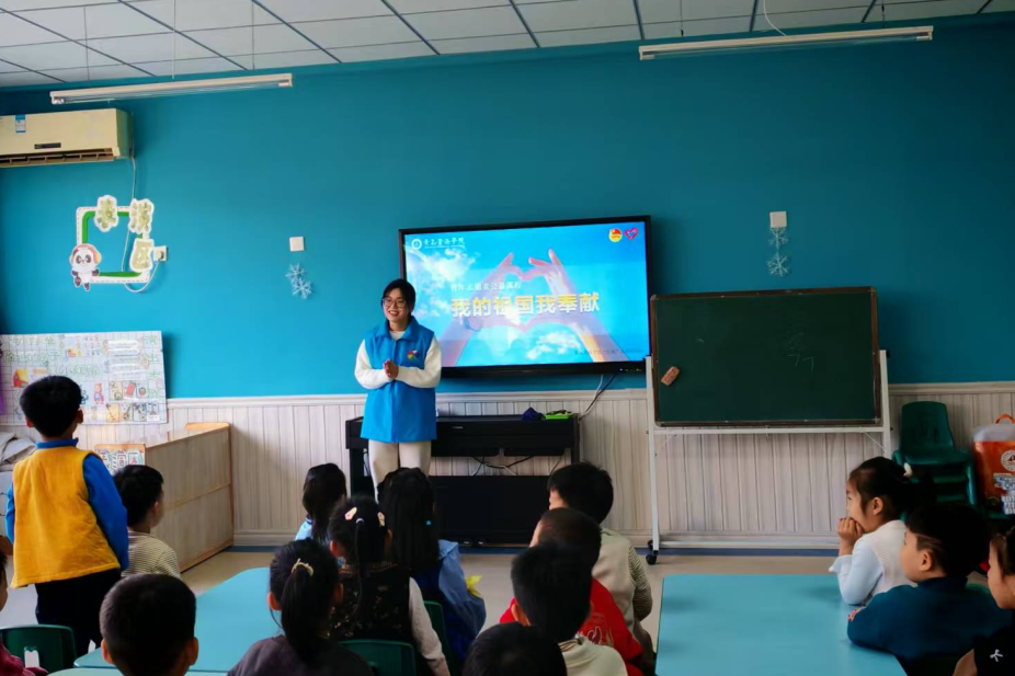 在课程尾声,活动在那欢快悠扬的《国旗国旗真美丽》歌声中缓缓落下帷幕。志愿者们与孩子们手拉手,心贴心,一同留下了珍贵的合影留念。镜头之下,那一张张天真无邪的笑脸,如同春日里绽放的花朵,洋溢着无尽的快乐与希望。而在那动人的歌声里,一颗颗饱含爱国情怀的种子,正悄无声息地深埋进孩子们的心田,只待岁月的滋养,破土而出,长成参天大树。