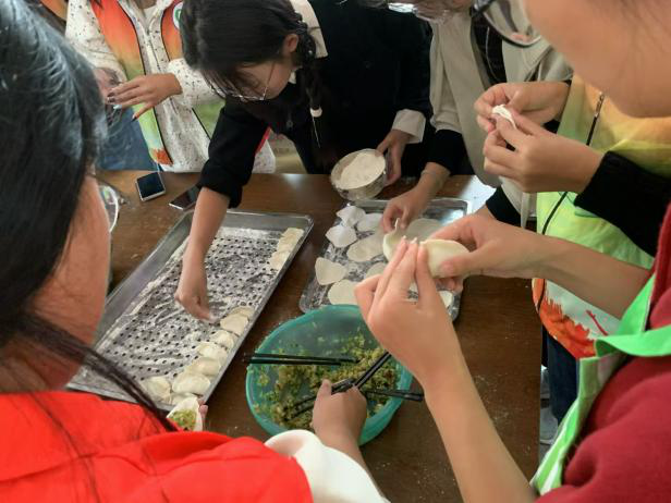 在这个环节志愿者们大展身手,分工协作,有条不紊。一些奶奶们负责弄馅料,而志愿者们则是揉面团、擀饺子皮、运饺子皮和馅料以及包饺子。包饺子的同学手法娴熟,虽然每个志愿者的包的技法不同,饺子形状也各异,但每个饺子都倾注了每位志愿者的关怀与爱。