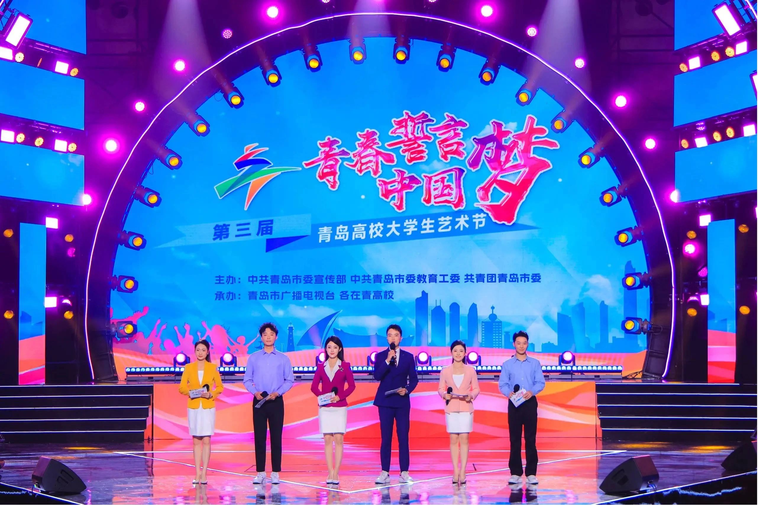 5月15日下午,第三届青岛高校大学生艺术节文艺汇演在中国海洋大学崂山校区体育馆举行。本次汇演以“青春誓言中国梦”为主题,由市委宣传部、市委教育工委、团市委主办,市广播电视台、在青各高校共同承办。其中,我校12名师生作为演员、旗手参加活动。