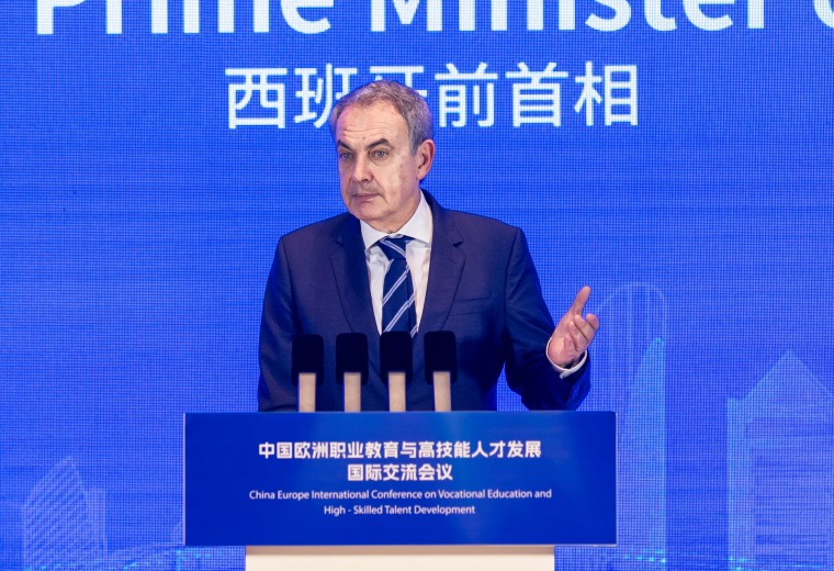 2025年正值中国与欧盟建交50周年,为进一步推动中欧职业教育和人文交流,中国人民对外友好协会和中国欧盟协会于6月11日在山东省青岛市共同举办“中国欧洲职业教育与高技能人才发展国际交流会议”。十三届全国政协副主席、中国欧盟协会会长刘奇葆、西班牙前首相萨帕特罗、青岛市人民政府副市长赵燕出席会议并致辞。会议由中国欧盟协会副会长夏耕主持。
