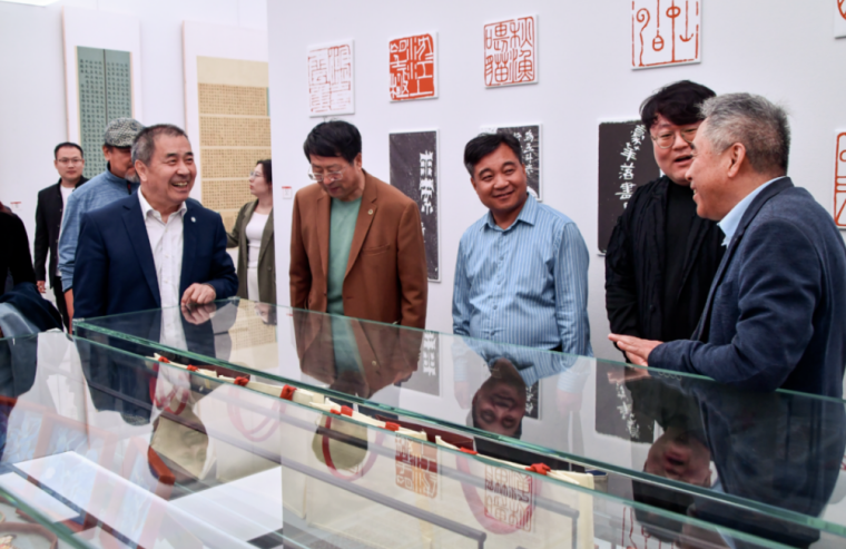 开幕式后,全体人员合影留念,并参观了美术馆内的艺术展览。展厅汇聚了设计与美术学院、影视学院师生的优秀作品,涵盖环境设计、视觉传达设计、数字媒体艺术、绘画、书法、动画、戏剧影视美术设计、影视摄影与制作、播音与主持、戏剧影视表演等专业领域,传统水墨与数字艺术交相辉映,吸引嘉宾驻足品鉴。