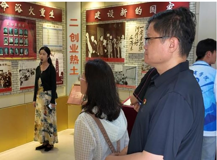 纪念园内,革命斗争纪念馆、村史馆、乡村记忆馆和导沭整沂展示馆四部分组成了完整的历史记忆链。走进革命斗争纪念馆,185平方米的展区被分为“滨南旌旗”、“苍马烽火”、“钢铁堡垒”和“千秋伟业”四个主题。一件件展品向实践团诉说着不平凡的往事:刘少奇、陈毅、罗荣桓等老一辈革命家曾在此工作战斗;中共中央山东分局、山东省战工会、山东军区等机关曾驻扎于此;村民们“最后一把粮做军粮,最后一块布做军装,最后一个儿子送战场”奉献精神也令实践团动容。