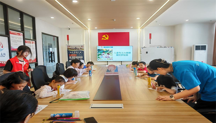 曼陀罗绘画课是本次活动的创意亮点。老师首先通过播放舒缓平静的音乐锻炼孩子们的正面冥想能力。随后志愿者带领孩子们以圆为形、以色彩为语,通过自由创作表达内心世界。课堂中,志愿者与孩子们共同绘制、互相分享,用艺术连接情感,让每一幅作品都成为独特的成长印记。