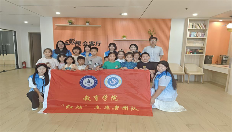 活动尾声,志愿者与孩子们共同举起团队旗帜,定格下这段充满温暖与收获的时光。从书法课堂的专注到绘画活动的灵动,从英语互动的欢乐到集体合影的温馨,“红烛”志愿服务队用实际行动践行着教育者的责任与担当,不断绽放着志愿公益的风采。