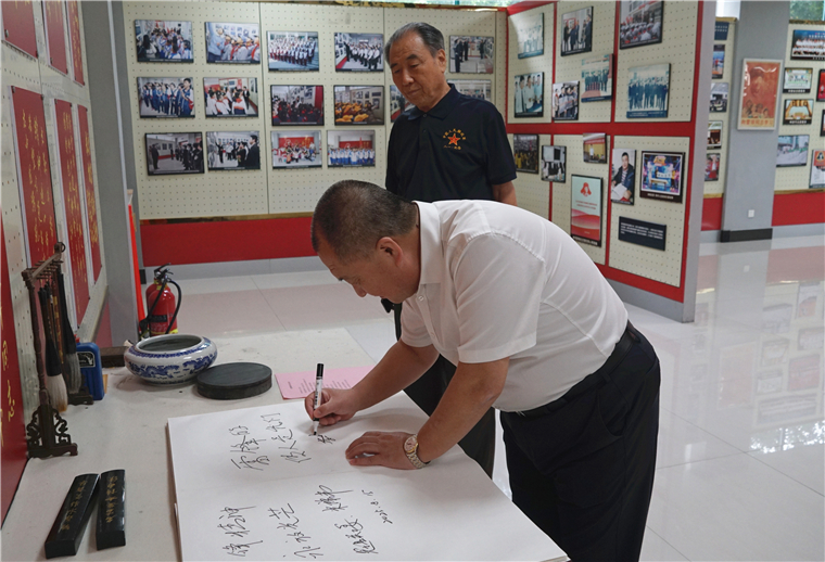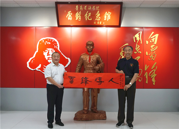 李峰威首先参观了学校雷锋馆、博物馆、雷锋林等思政教育场馆,并实地走访了学校阅享空间等智慧化学习空间。“学校雷锋馆清晰的展现了雷锋成长与雷锋精神传承的脉络。”参观雷锋馆时李峰威动情地说。他将自己作词的“雷锋班”班歌《雷锋的传人是我们》的歌名题写在留言簿上,赠送给学校。宋庆泽主任也将自己的书法作品“雷锋传人”赠送给李峰威副班长,双方在雷锋像前合影留念。