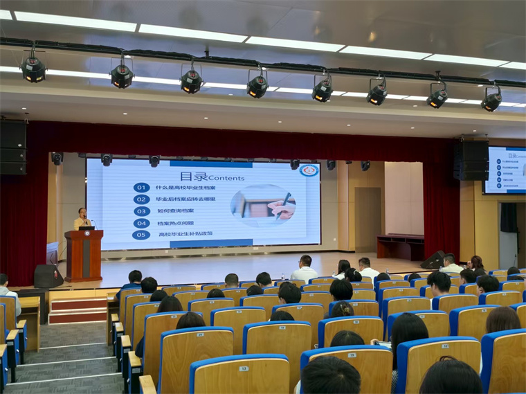 新区人社局档案服务科副科长管晓燕为毕业生作了就业服务政策专题宣讲。她就“什么是高校毕业生档案”“毕业后档案应转去哪里”“如何查询档案”等热点问题进行了细致解读,强调了档案对于个人未来发展的重要性,介绍了青岛人才网及微信公众号的档案查询与业务办理途径,并公布了西海岸新区档案接收地址和咨询电话,帮助毕业生了解档案转递流程。此外,还介绍了高校毕业生在青在区就业创业政策,鼓励毕业生留青留区就业创业。