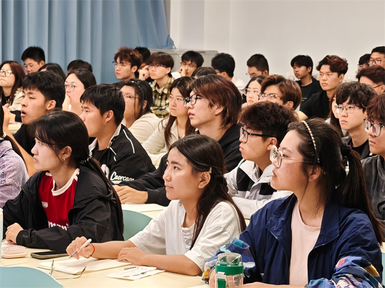 讲行动准则时,他融入“方法与态度理念”,解读“知行合一”的校训。他鼓励大家要争做“品学兼优”的标杆,平衡学习与工作,以优良班风、学风、舍风推进良好院风的建设,凭实干实现成长突破;谈综合素养,他强调各位学生干部要具备“中国心、国际范、青岛味、黄海情”:守“中国心”厚植家国情怀,以“国际范”抓中外合作办学的机遇拓视野,凭“青岛味”对接产教融合,用“黄海情”破挑战,主动抓机遇;最后他希望大家“身上有光、肩上有责、心中有秤”,既做优秀自己,更当引领集体的榜样,诠释学生干部的成功。