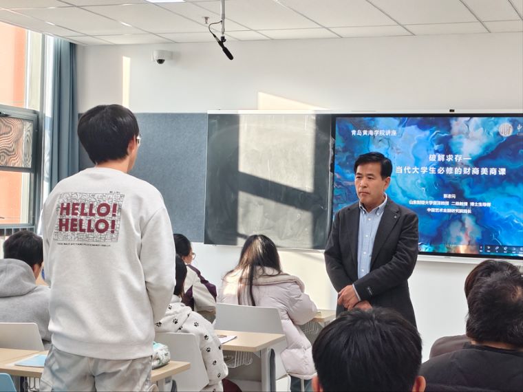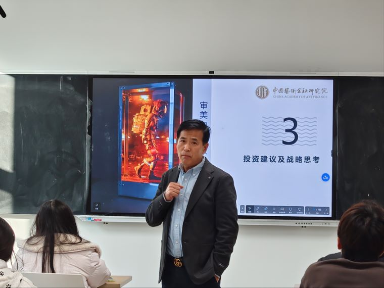 张志元教授首先详细了解了国际商学院的建设现状与未来发展规划,结合自身深厚的学术积淀和丰富经验,围绕学院学科建设、师资团队建设、科研项目申报及教学重心优化等关键领域提出针对性建议,为学院高质量发展提供了宝贵思路。在面向学生的专题授课环节,院长助理王佳璇向金融科技专业学生介绍了张志元教授的学术背景与研究成果。随后,张教授以生动鲜活的案例为支撑,系统阐释了财商与美商的核心内涵及重要价值,明确提出“财商是创造价值,管理财富的认知、能力和素养;美商是审美的认知、素养和能力,更是精神创造财富的能力”,强调当代大学生应高度重视财商与美商的双重培养。结合自身研究领域,张志元教授还深入讲解了“艺术金融的发展逻辑”“艺术品投资实践”“艺术资产管理研究与人才培养”等专题内容,为学生搭建起专业知识与跨界应用的桥梁。互动交流环节,同学们踊跃提问,张教授耐心答疑解惑,现场氛围热烈融洽。