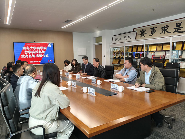 11月14日,青岛大学商学院教学实践基地黄海基地揭牌仪式在知信楼406会议室顺利举行。青岛大学商学院党委书记王庆金一行7人,与国际商学院院长王志宪、常务副院长孙兆忠等领导共同出席仪式。