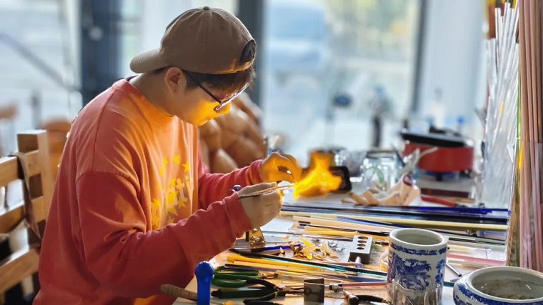 琉璃烧制技艺在我国已有数千年历史,2008年被列入国家级非物质文化遗产名录。其中,灯工技艺是琉璃制作的重要门类,利用琉璃的热塑性与热熔性,在高温中边加热边塑型,被誉为“火中的雕塑”。