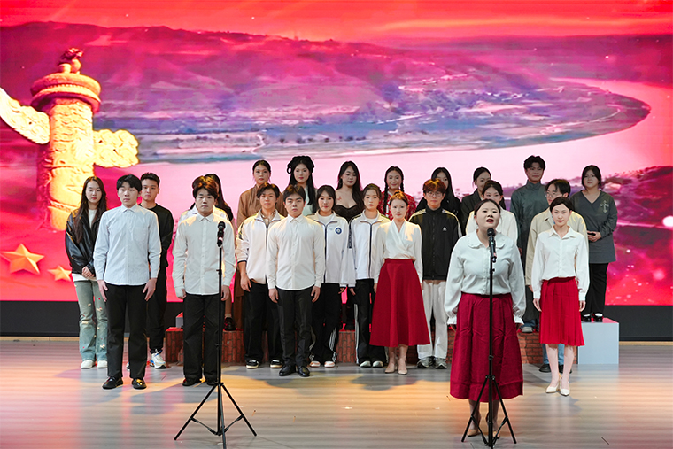 演出在庄严而富有诗意的开场白中启幕,通过“时光如刻刀,梦想如光芒”的意象串联起整场叙事。节目设置兼具思想性与艺术性,既有《人世间》《在变老之前远去》《我的墓碑》等经典文学作品朗诵,展现声音的叙事张力与情感深度;也有《青春剧本》《盲人摸象》等原创与改编剧目,体现学生的舞台表现与剧本理解能力;配音秀、《谁拖延了背稿》等轻松活泼的环节,展示了播音专业学生的语音塑造与喜剧节奏掌控力;而压轴节目《黄河魂》则以磅礴的集体朗诵,将现场气氛推向高潮,呼应了纪念中国人民抗日战争暨世界反法西斯战争胜利80周年的时代背景,传递出青年一代的历史自觉与责任担当。