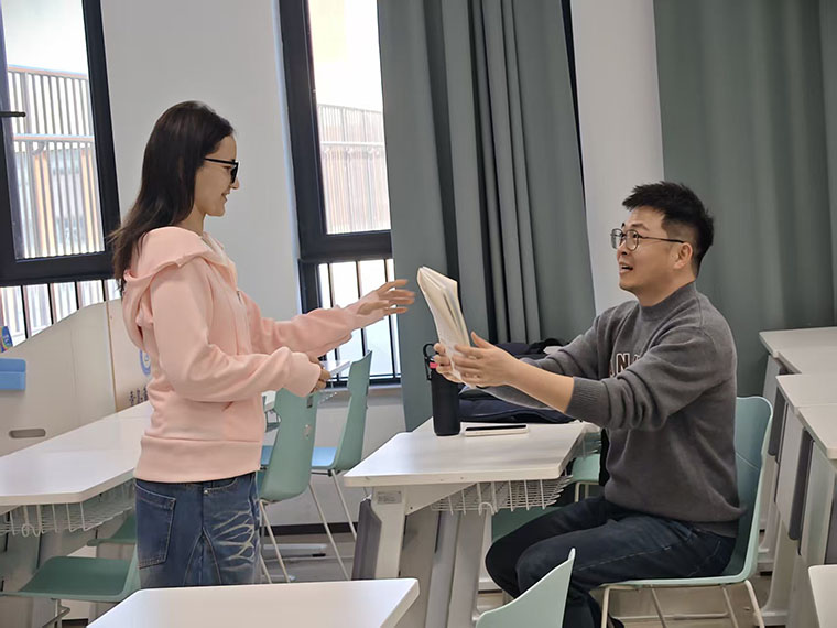 活动现场,指导老师结合历年考研复试英语面试的核心考点与常见题型,从自我介绍逻辑、问答技巧、发音语调等关键环节展开讲解。老师通过拆解典型案例、分析评分标准,帮助同学们理清面试思路,规避常见误区。针对考研复试中高频出现的专业相关问题、个人规划类提问,老师还现场示范答题框架,引导同学们掌握清晰表达、突出亮点的应答方法。