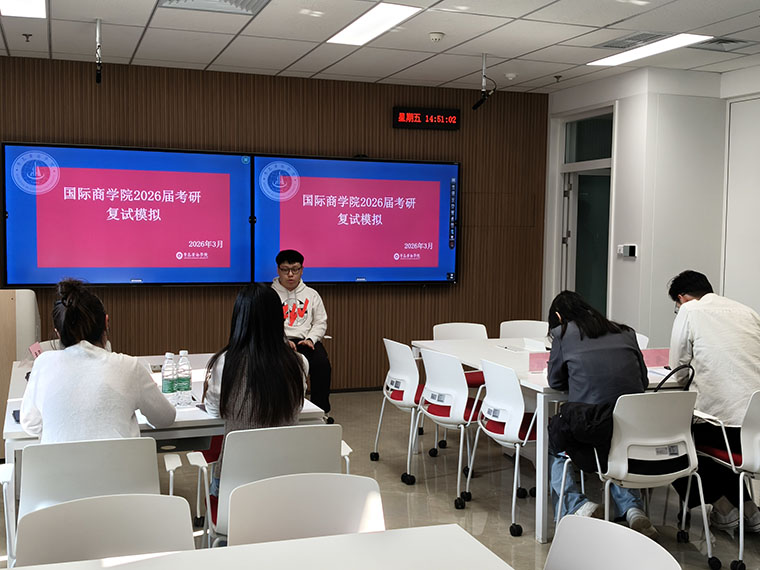 为切实帮助2026届考研学子精准把握复试节奏、提升应试能力、缓解备考压力,2026年3月20日,国际商学院在知信楼327教室精心组织、周密安排,开展考研复试模拟演练活动,为每一位逐梦学子保驾护航。