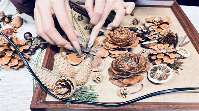 “草木拾心 ”手工室为解决劳动教育“孤岛化 ”的问题, 自然、妥帖地推出了“大学主导、中小学参与、校企协同 ”的实践模式:高校提供场地、师资、材料,中小学组织学生分批参加实践,共建文创转化平台, 由此真正形成“资源共享、责任共担、成果共享 ”的育人共同体。手工室与学校周边中小学建立了长期、扎实、有层次的合作关系。通过对松塔、广玉兰果实等 50 余种自然素材进行分类收纳与数据建档,系统开发了木作拼贴、简易木具制作、创意景观设计等多元化劳动教育实践形式。累计组织开展个人及小组手工制作活动 50 余场,覆盖人数超 1000 人次。调研结果显示,87%的学生对自然手工表现出浓厚兴趣,91%的学生在实践中真切体会到动手创作与劳动实践的乐趣,部分学生还反馈参与活动有助于舒缓情绪、释放压力。