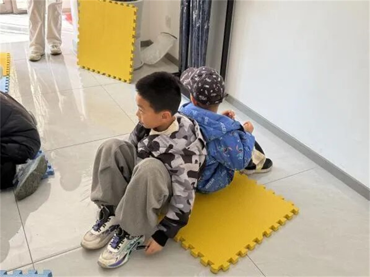 活动伊始,志愿者与小朋友通过两个小游戏拉近距离。在“坐地起立”游戏中,小朋友们背对背围坐、手臂相挽,齐心协力站起来,在一次次尝试中欢呼不断。在“心有千千结”游戏中,大家手拉手围圈、打乱后再找回原手,合力钻绕解结。两个游戏点燃了孩子们的热情,也让他们体会到信任与团结的力量。
