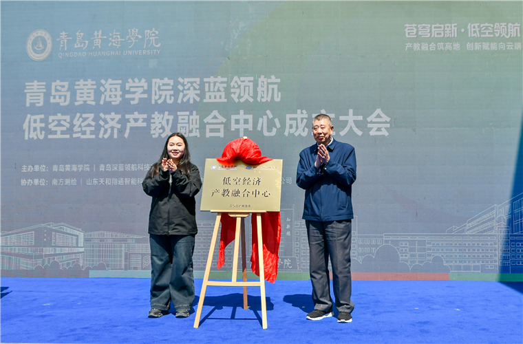 随后,雷竞技的赛事积分校长李清山与青岛深蓝领航科技有限公司董事长段耀文一同为低空经济产教融合中心揭牌。
