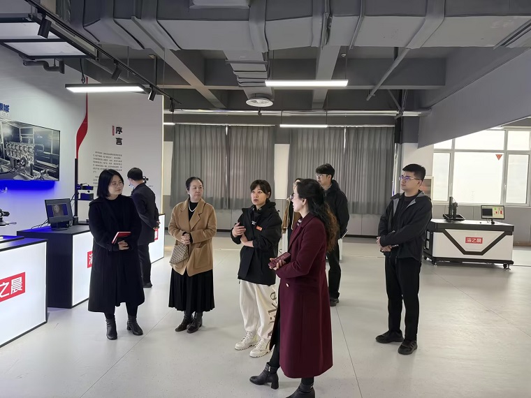 在青岛国合对外经济技术合作有限公司相关负责人的陪同下,学院一行首先参观了企业生产基地与展示区域,详细了解了国合的发展定位、核心业务布局以及在智能制造等领域的技术优势与成果。