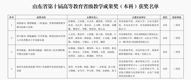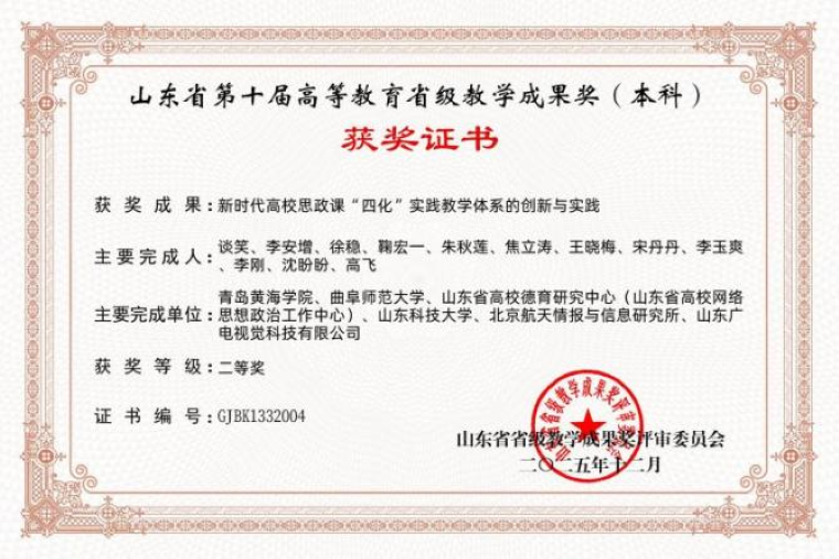 山东省高等教育教学成果奖由山东省人民政府批准设立、山东省教育厅组织评审,每四年评选一次,是全省高等教育领域规格最高、权威性最强、影响力最广的教学类奖项,集中体现高校落实立德树人根本任务、深化教育教学改革、提升人才培养质量的标志性成效。