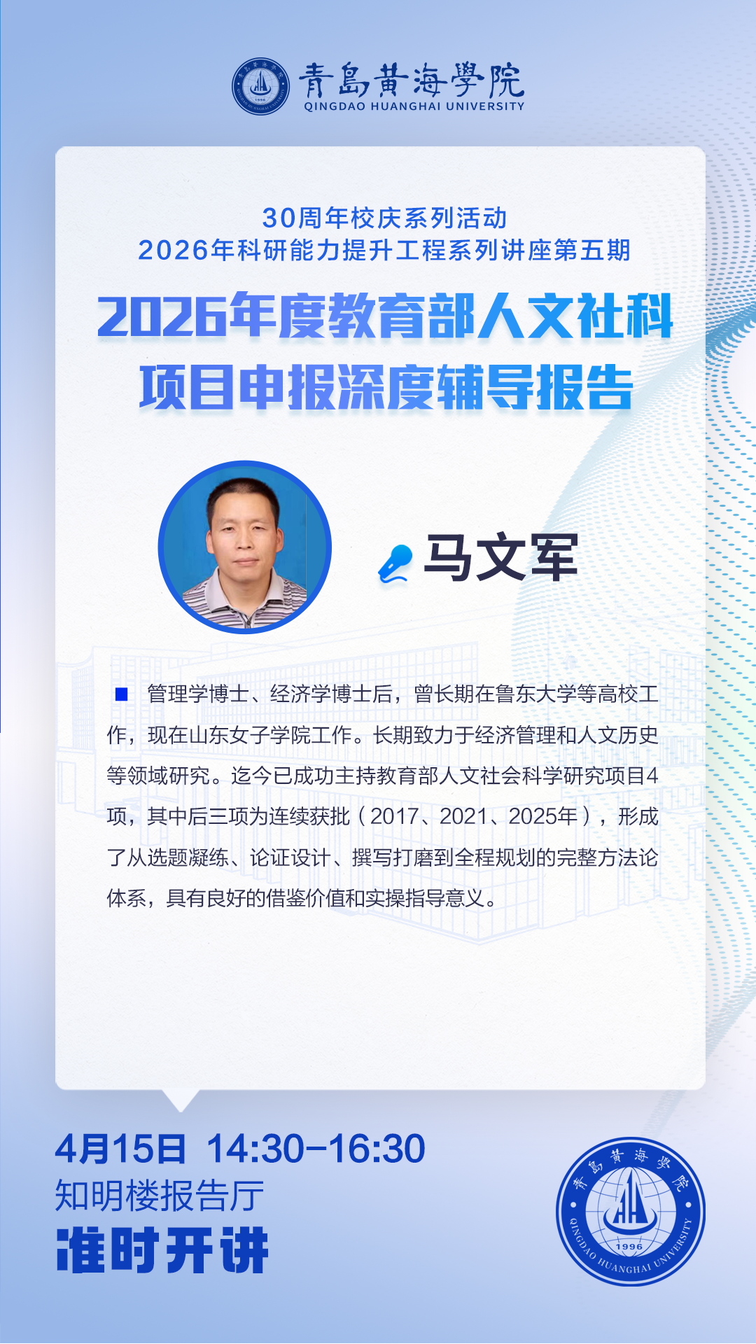 讲座地址:知明楼报告厅