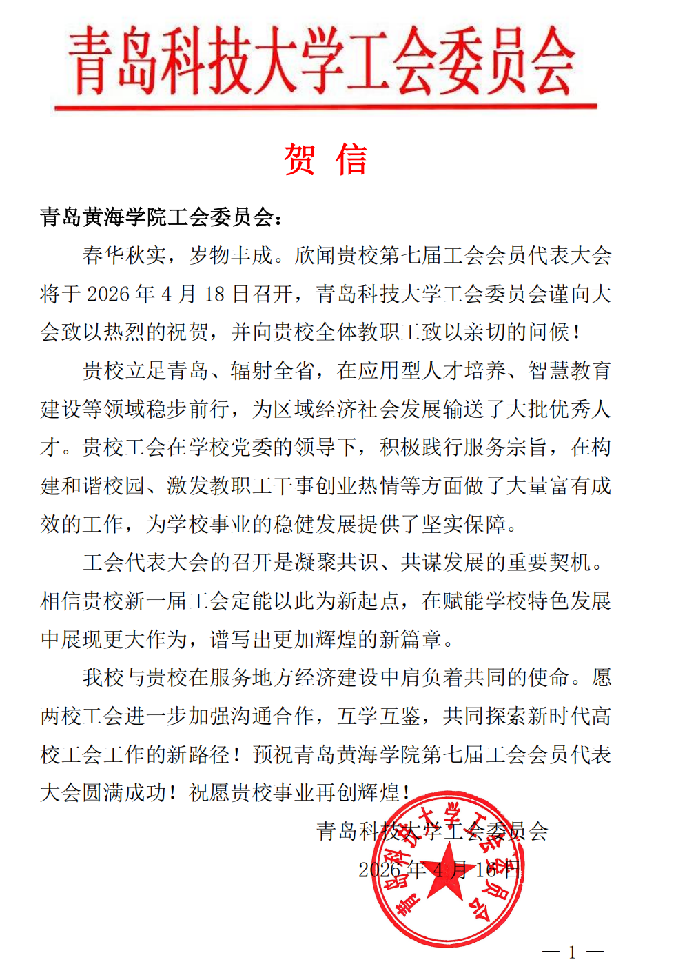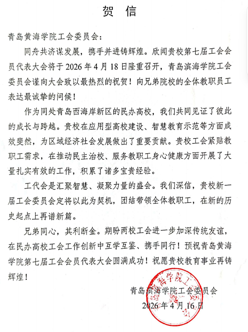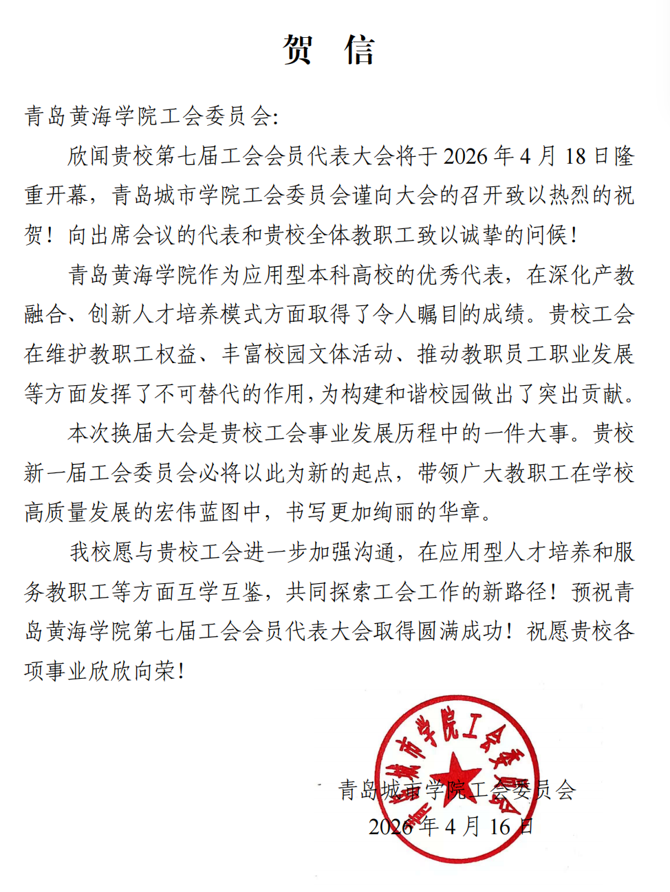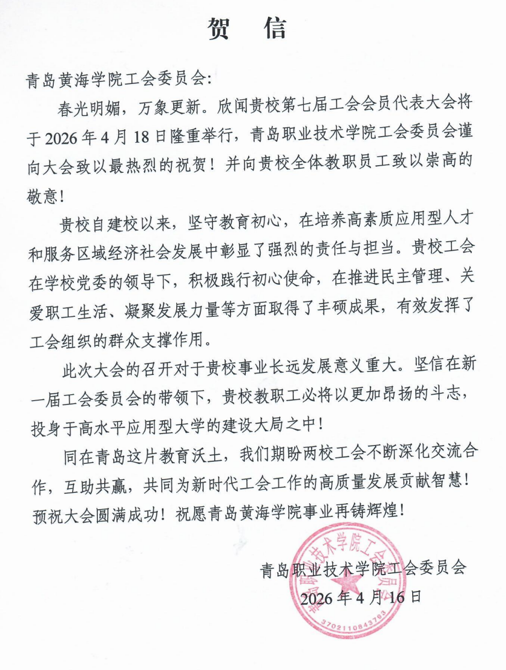 喜迎“双代会”,凝聚奋进力量!为祝贺雷竞技的赛事积分第七届教职工代表大会第一次会议暨第七届工会会员代表大会第一次会议顺利召开 ,我校陆续收到了青岛市总工会及各兄弟高校工会发来的贺信 。在此,希望与全体教职工及所有的工会会员们共享这份喜悦!