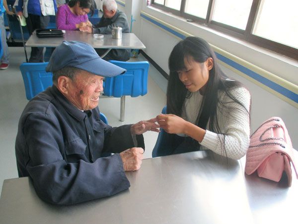 活动当天,志愿者们首先对每位老人的身体及生活状况做了简要了解,之后开展了一系列志愿服务活动。他们陪老人聊天,为老人梳头发、剪指甲、量血压,打扫卫生等,让老人们体会到久违的亲情和社会的温暖。同学们表示,未进入敬老院之前,一直都觉得,老人们的晚年生活应该是幸福的,但是看到老人那落寞的眼神,那被岁月摧折的脊背,那被时光的车轮碾过留下岁月的痕迹的脸庞,就会发现:“他们真正渴望的是同亲人相聚在一起,他们不需要所谓的物质,他们需要的是关心和问候。”