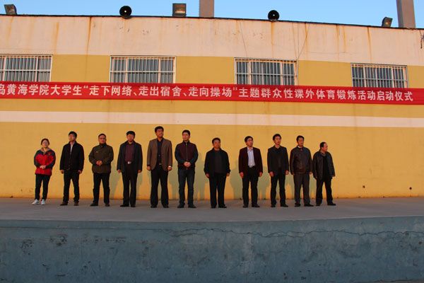 3月24日早晨,以“运动的青春最美丽”为主题的黄海大学生“走下网络、走出宿舍、走向操场”群众性课外体育锻炼活动启动仪式在学校体育场举行。我校校长助理、学生工作分管领导,学生工作处副处长孙兆忠、张永军,团委书记张艳、及各二级学院行政副院长出席启动仪式。各二级学院学工主任、团总支书记、辅导员和学生代表4000余人参加活动。启动仪式由建筑工程学院团总支书记杨健主持。